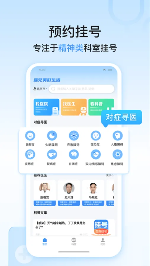 对症寻医-罗列精神类疾病,了解病情,针对擅长医生挂号。
