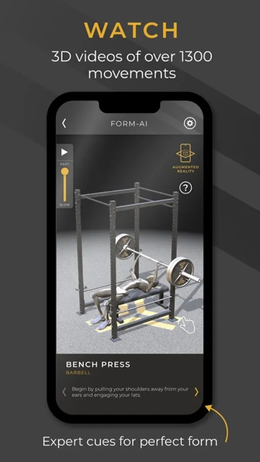 Watch each exercise performed for you in 3D by ABEL, the FORM-AI avatar trainer. View from the side, from above, or however works for you to understand the basic movement patterns. You can even see the exercise in your space with our Augmented Reality (AR) mode!