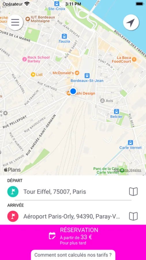 Réservez votre chauffeur VTC professionnel à l'avance sur votre application PARIS AIRPORT DISNEY TRANSFER