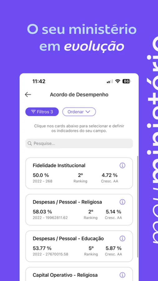 Acompanhar do diagnóstico do CRM (Comunhão, Relacionamento e Missão) de suas igrejas;