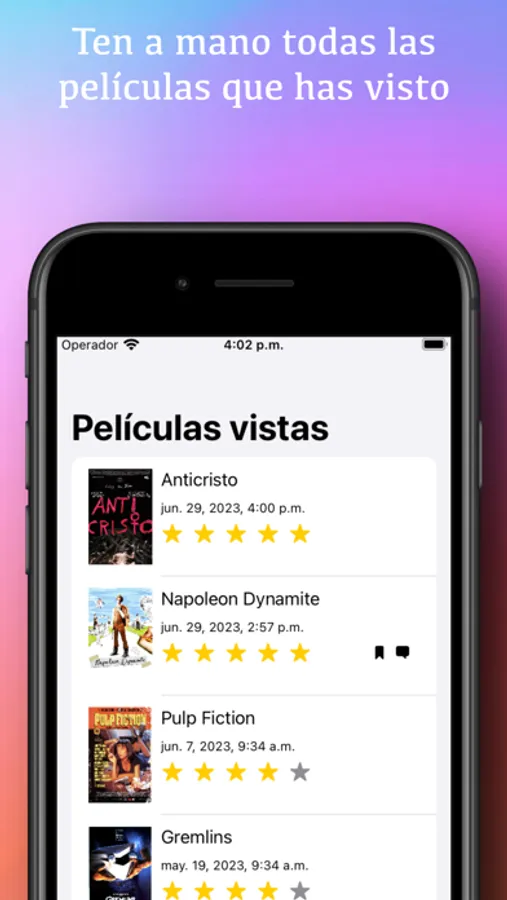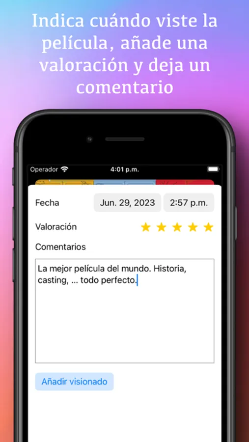 Con Diario de películas podrás llevar la cuenta de todas las películas que has visto así como puntuarlas y comentarlas. También podrás tener una lista de películas pendientes por ver.