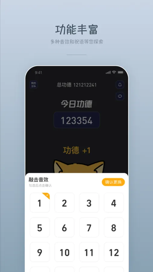 点击敲木鱼,享受敲击木鱼的乐趣,支持手动或自动敲击,自由切换。
