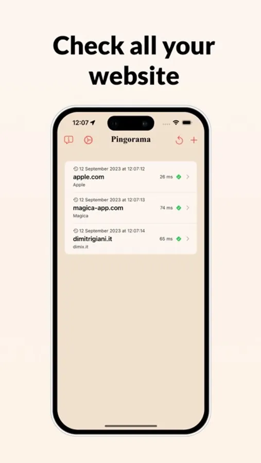 With Pingorama, you'll always stay updated on the health status of your favorite sites. Through regular ping checks, the app continuously monitors site accessibility and promptly notifies you of any connection issues. Rest easy knowing that Pingorama is watching over your web pages!