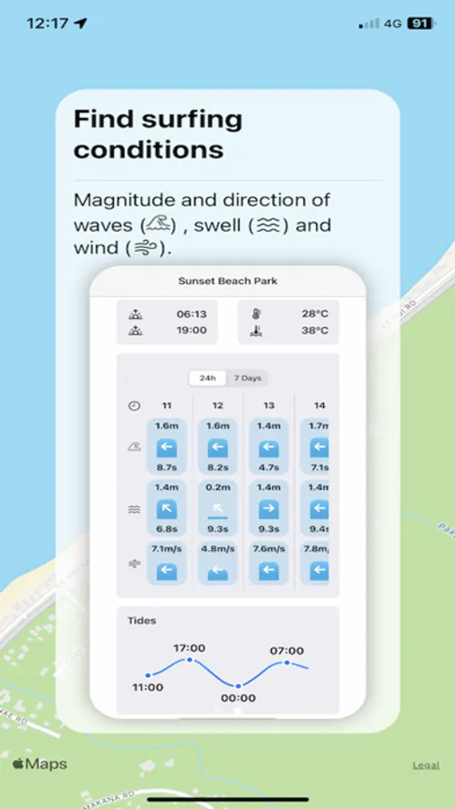 The app does not have advertising nor sign-in. It just works. Check all the necessary sea condition in the palm of your hand, and plan you surfing trips to get the most of your day.