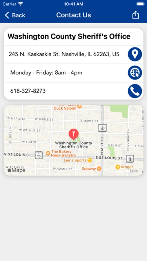 The Washington County Sheriff’s Office mobile application is an interactive app developed to help improve communication with area residents. The Washington County IL Sheriff’s app allows residents to connect with the Washington County Sheriff’s Office by reporting crimes, submitting tips, and other interactive features, as well as providing the community with the latest public safety news and information. The app is another public outreach effort developed by the Washington County IL Sheriff’s Office to improve communication with county residents and visitors. This app is not intended to be used to report emergencies. Please call 911 in an emergency.