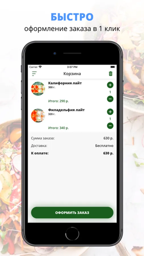 Скачивайте наше приложение, оформляйте заказ и наслаждайтесь любимой едой, где бы Вы ни были! Приятного аппетита!