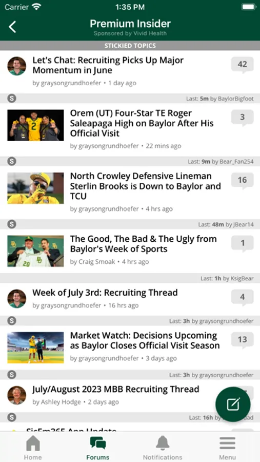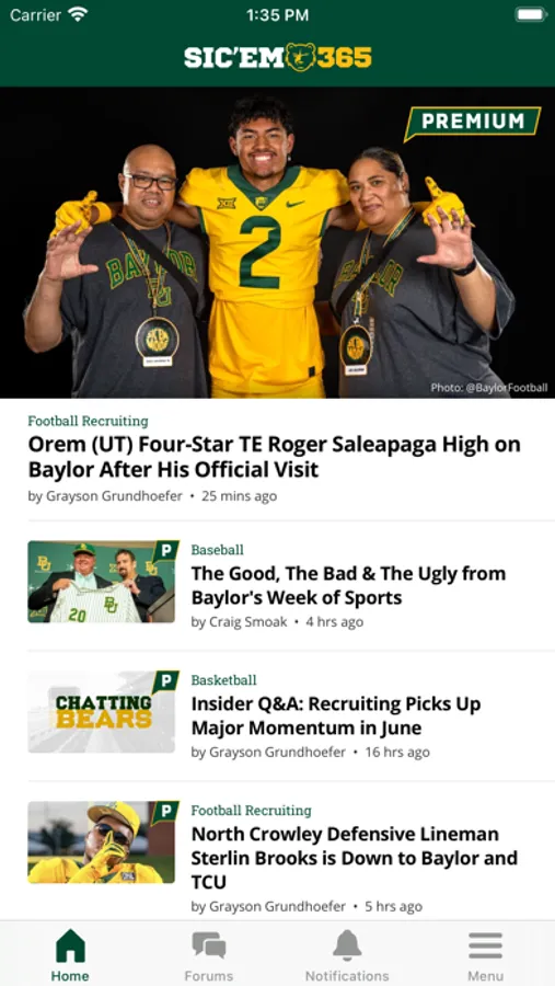 The SicEm365 app is the ultimate experience for Baylor fans who enjoy reading, listening, watching our content and talking about the Bears in our popular forums. Our app gives direct access to all content and you can be notified with our customizable notification system. Join the largest Baylor community with one simple app.