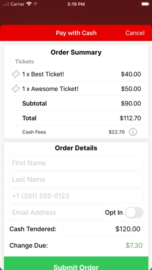 Take cash and credit orders on the spot (some audio card readers supported—see our website for details)