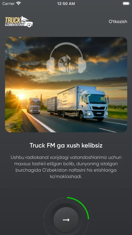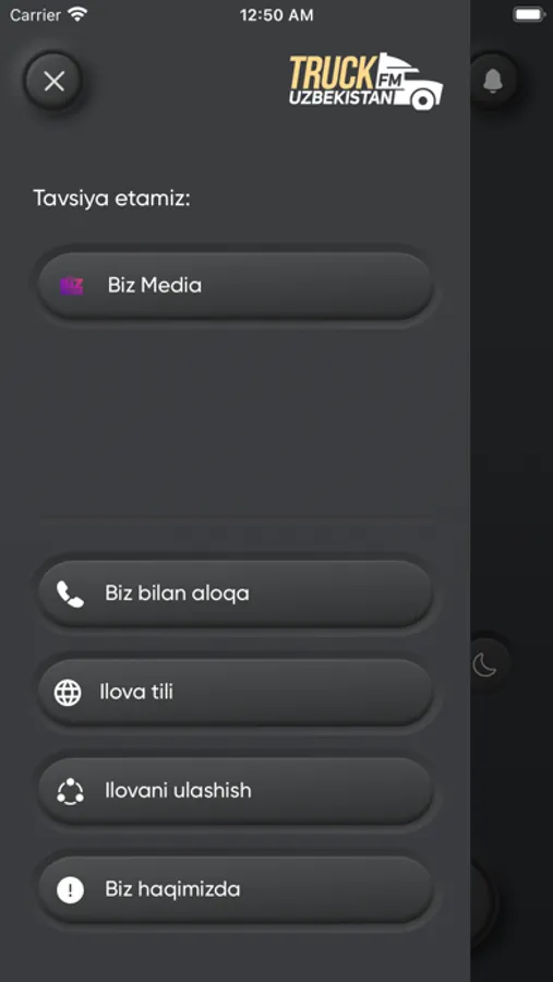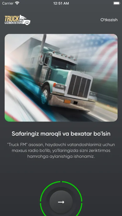 "Truck FM" radiokanali 2023-yil boshida tashkil etilgan bo'lib, xorijdagi vatandoshlarimiz, asosan trak haydovchilari uchun mo'ljallangan. Asosiy maqsad ham aynan ularni safar davomida zeriktirib qo'ymaslik, sog'ingan kuy-qo'shiqlarini yangratish va turli eshittirishlar orqali ularning ham hayotini ommaga kengroq yoritish, interaktivlikni yo'lga qo'yib, ularning ham fikrlarini tinglash hisoblanadi