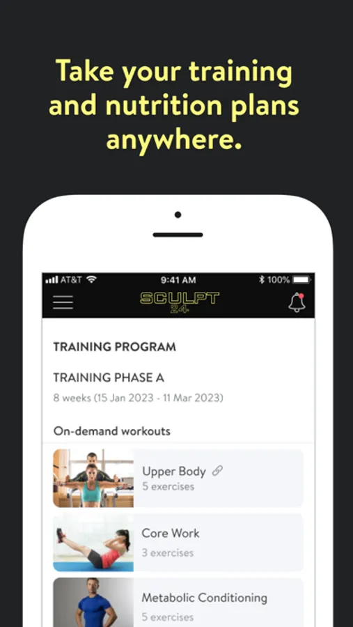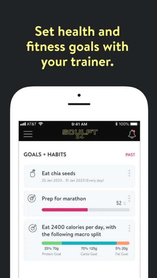 With the Sculpt 24 Gym App, you can start tracking your workouts and meals, measuring results, and achieving your fitness goals, all with the help of your personal trainer.