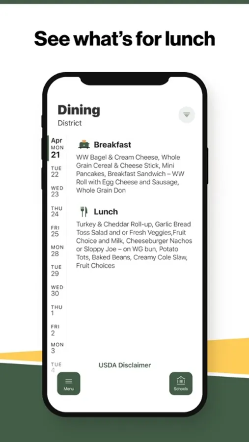 Within the dining section, you'll find an easy to navigate, weekly menu, sorted by day and meal type.