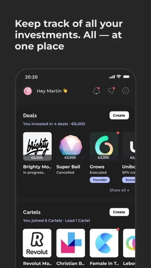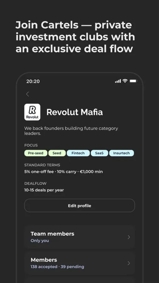 — Join Cartels — private investment clubs led by seasoned investors. Or create your own Cartel!