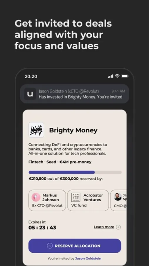 — Follow fellow founders, operators, VCs, and angel investors. Make new connections and get access to their deal flow;