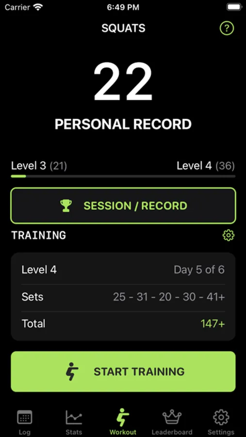 • Personalized training plan: Our scientifically developed training plan guides you towards your goal of completing 200 squats, with three individually adaptable levels that challenge you as you progress.