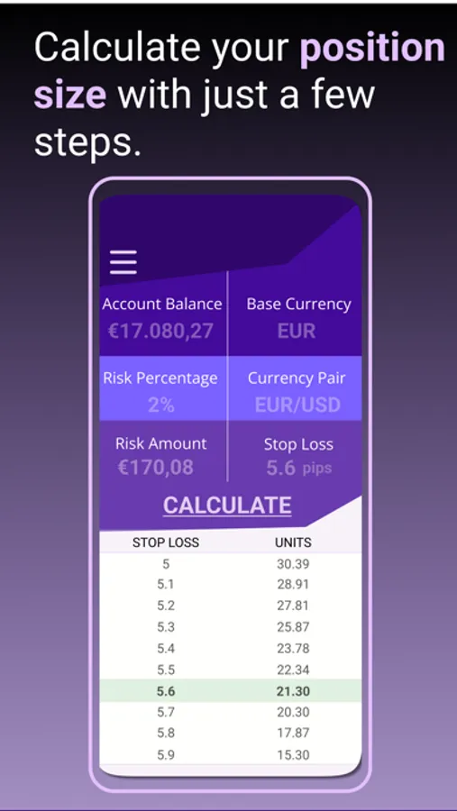 Once the risk calculation is complete, swiftly obtain an overview of the position size in case minor adjustments need to be made to your stop loss level.