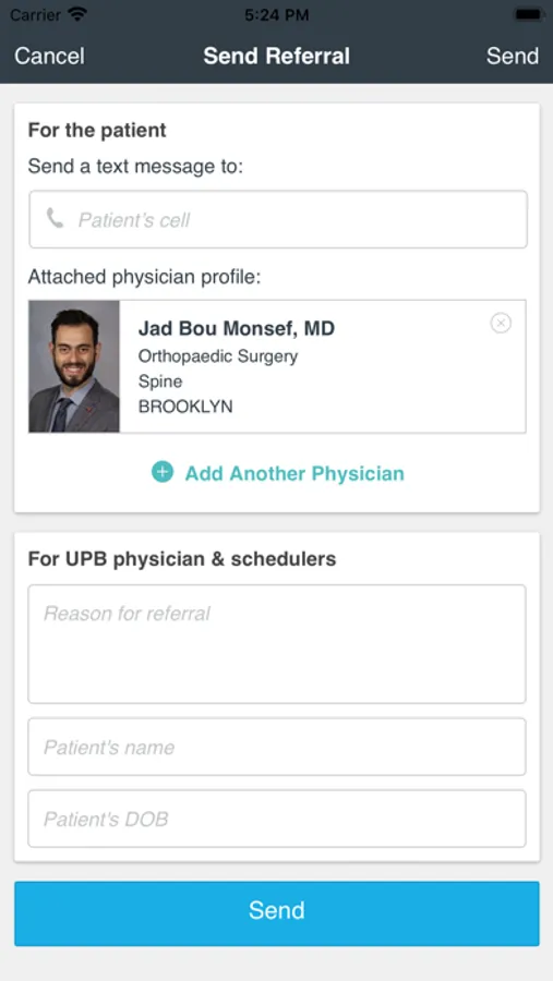 • Send a virtual business card of a referred specialist to patients to encourage their follow-through on your care plan