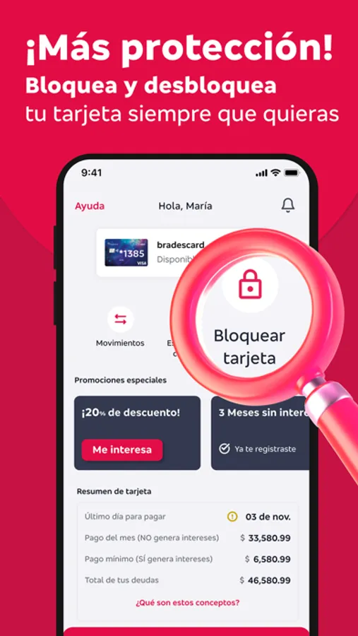 • Bloqueo y desbloqueo de tarjeta desde tu dispositivo móvil