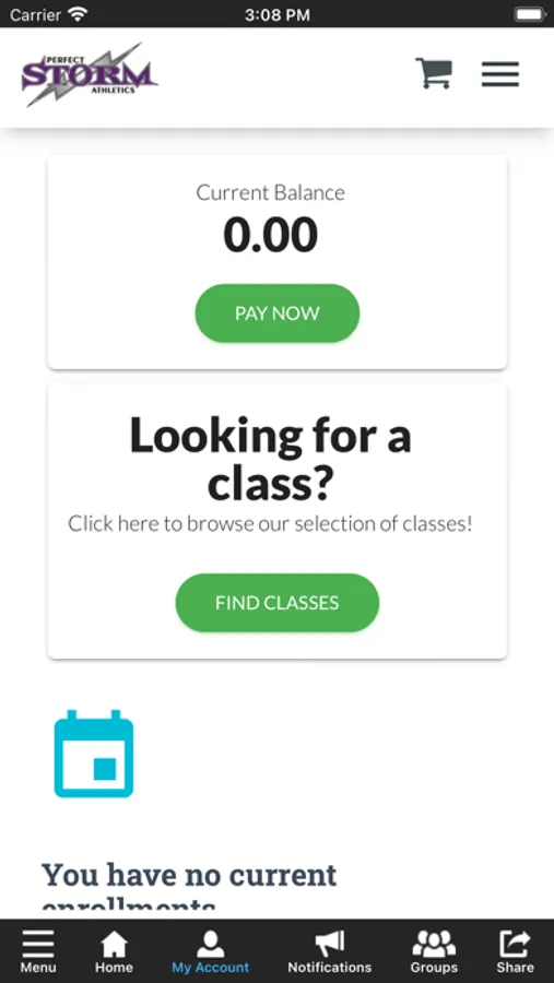 The Perfect Storm Athletics app allows you to manage your account with ease, register for classes, clinics, camps and more. You'll also receive important notifications about class changes, closings, registration openings, special announcements, and upcoming events.
