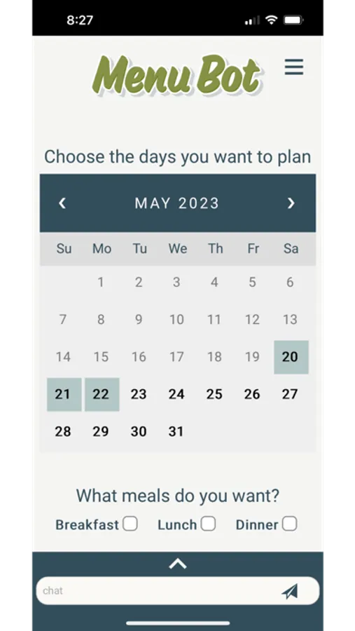 - Low carb meal plan? No problem. Picky eaters at home? No problem. Menu Bot can create a meal plan for even the pickiest eaters.