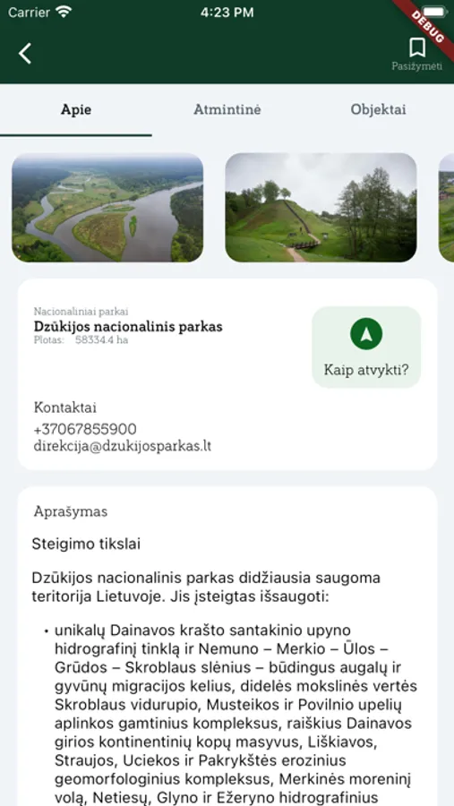Aplikacija sukurta siekiant likviduoti, sumažinti saugomų vertybių pažinimo spragas, iš esmės pagerinti informacijos apie saugomas teritorijas ir jų vertybes pasiekiamumą.