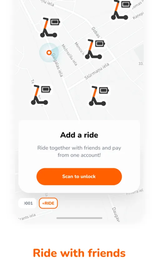 -Locate and scan an ORANGekik e-scooter to activate a