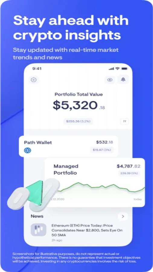 Interacting with the Path Crypto: Managed Portfolios application does not constitute investment advice or a recommendation or offer to sell or a solicitation to deal in any security or financial product. It is provided for information purposes only and on the understanding that the recipient has sufficient knowledge and experience to be able to understand and make their own evaluation of the proposals and services described herein, any risks associated therewith and any related legal, tax, accounting or other material considerations. There is no guarantee that investment objectives will be achieved.