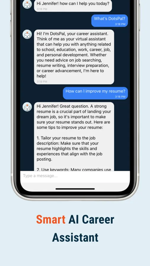 DotsPal is a generative AI trained with career advising knowledge that can provide you with feedback and answer on career development and job hunting-related topics.