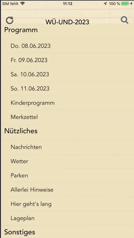 Über den Reload-Button auf der Startseite kann jederzeit das Hauptprogramm der App aktualisiert werden.