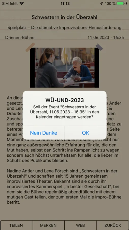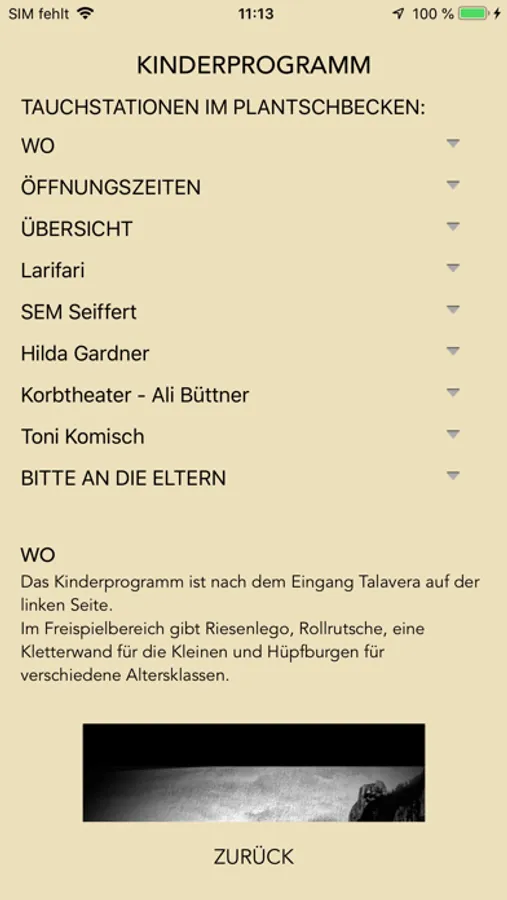 Notifications: werden diese beim ersten Starten der App erlaubt erhält man, auch wenn die App im Hintergrund läuft, aktuelle Informationen über Programmänderungen, Wetterwarnungen usw.