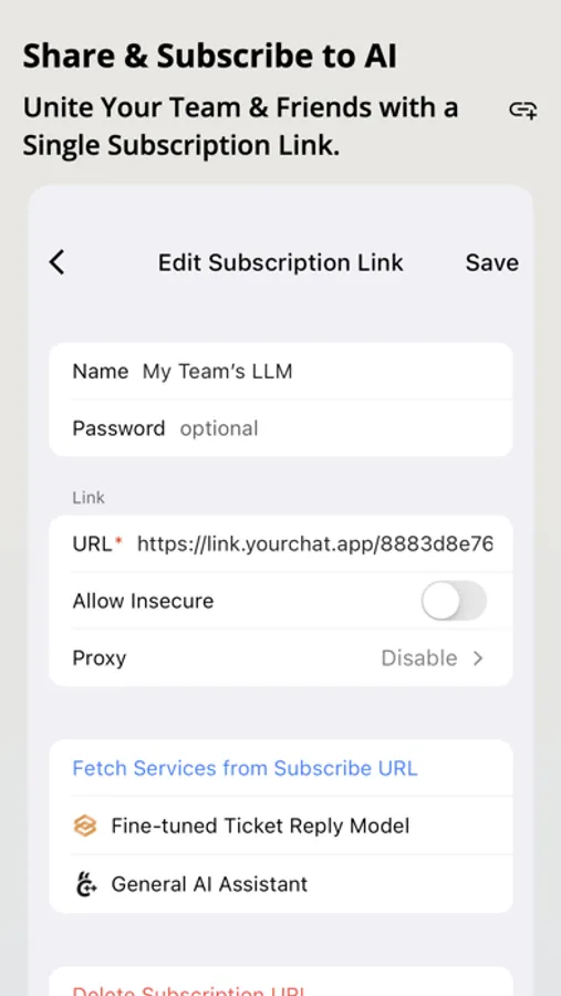 - Easily distributes or shares your LLM through Subscription Link