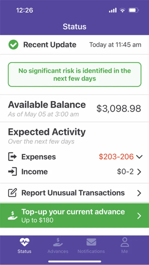 - Provides you with real-time alerts and analysis of your bank account and future expenses, so you are always prepared