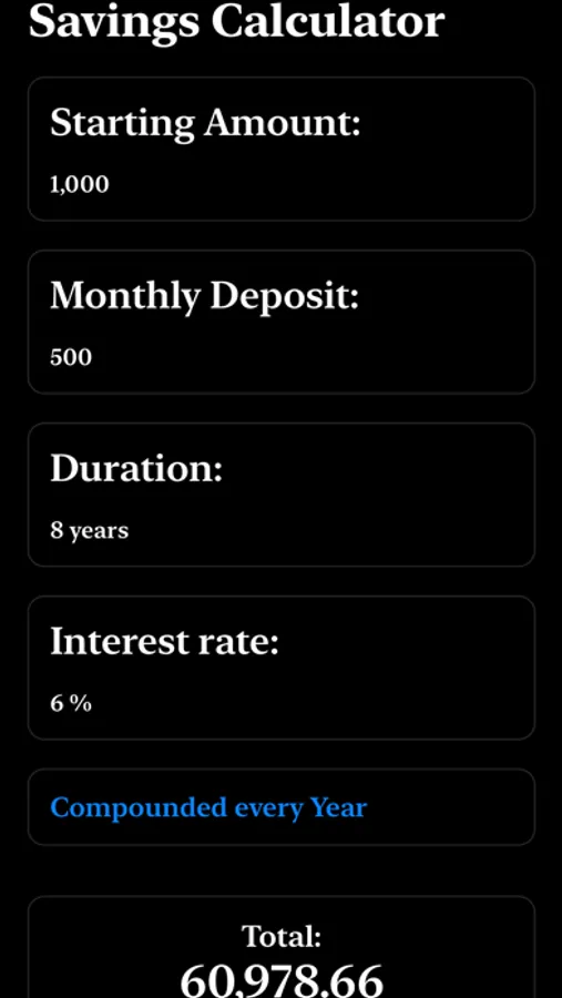 Savings Calculator allows you to project earnings from various kinds of investment products, like money market funds and savings accounts, quickly and privately on your iPhone. It works fully offline, with no ads or trackers, and is built with native technologies for the fastest, smoothest experience.