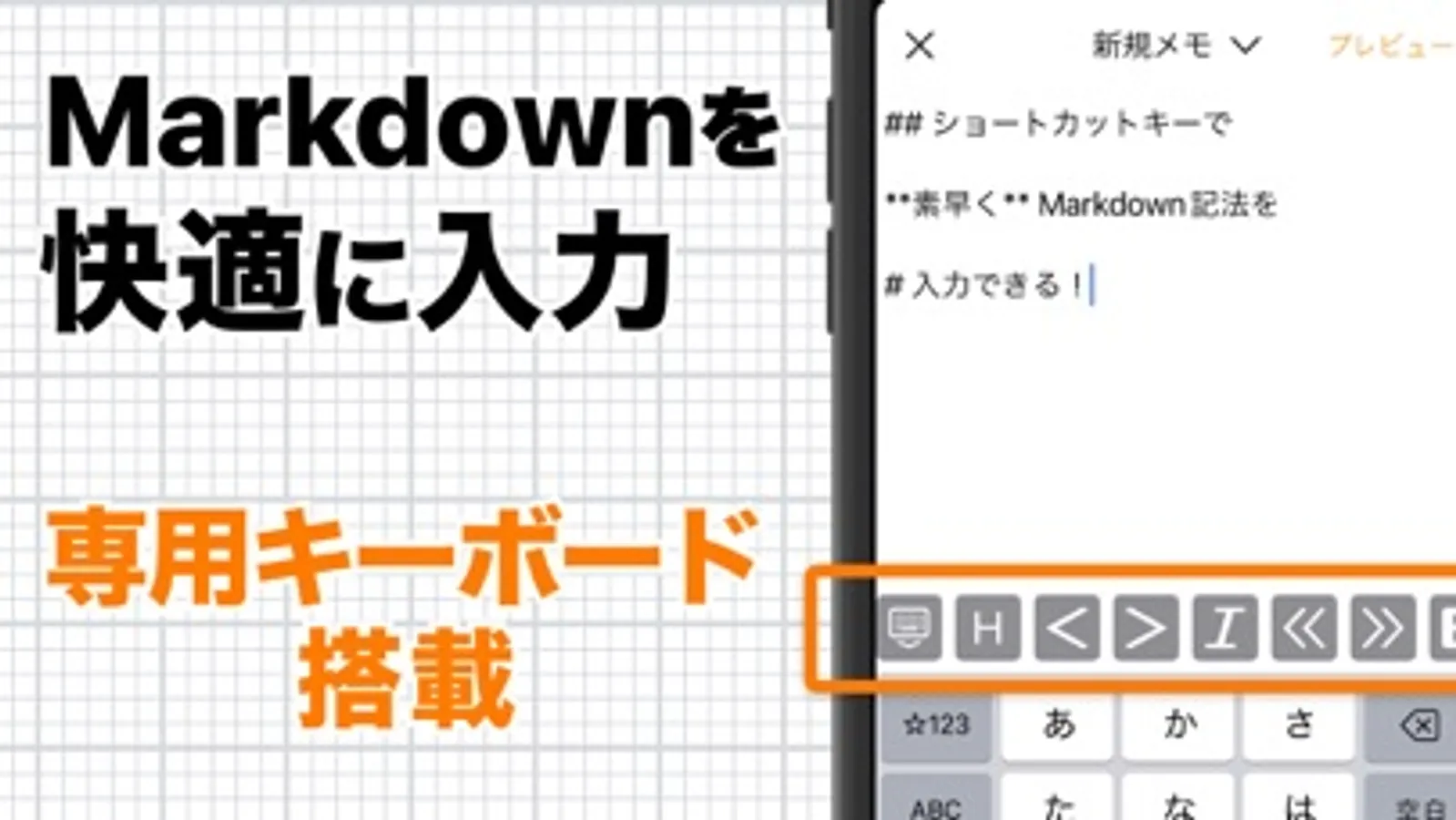 専用のキーボードを備えているため、最も一般的なMarkdownの記法を簡単かつ迅速に入力できます。