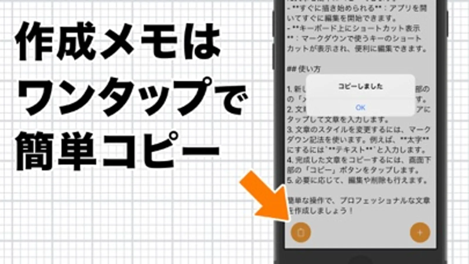 加えて、作成したメモをワンタップで簡単にコピーできます。これにより、ブログ記事やレポート、プレゼンテーションなどに、すばやくメモを貼り付けることができます。