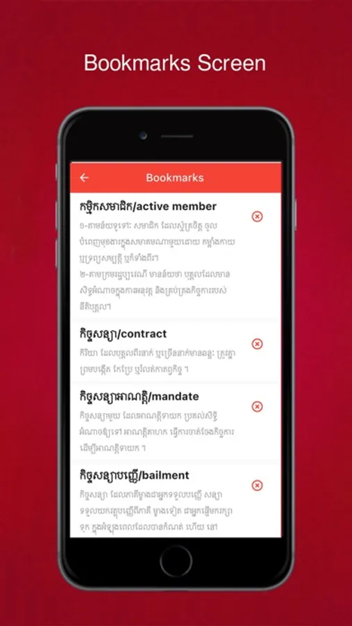 This app provides legal terms word technical in Khmer and English.