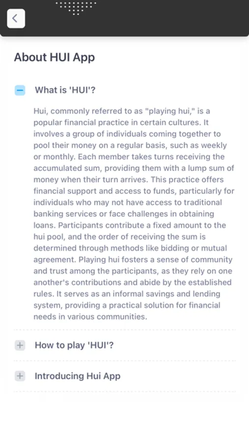 Hui App is a comprehensive tool designed to help newcomers understand and visualize the process of playing hui with ease. With features such as hui management, payment tracking, and profit/loss calculations, the app aims to provide a user-friendly platform for individuals who are new to the concept of hui.
