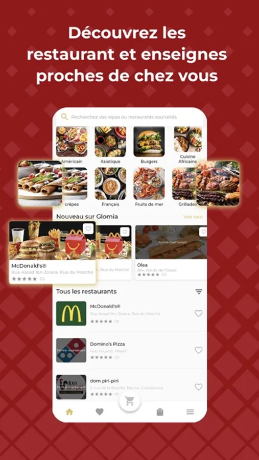 Avec Glomia, vous pouvez commander facilement des repas et des courses en ligne et les faire livrer directement à votre domicile. Notre application de livraison à domicile rapide et efficace vous permet de profiter de vos plats préférés en quelques clics.