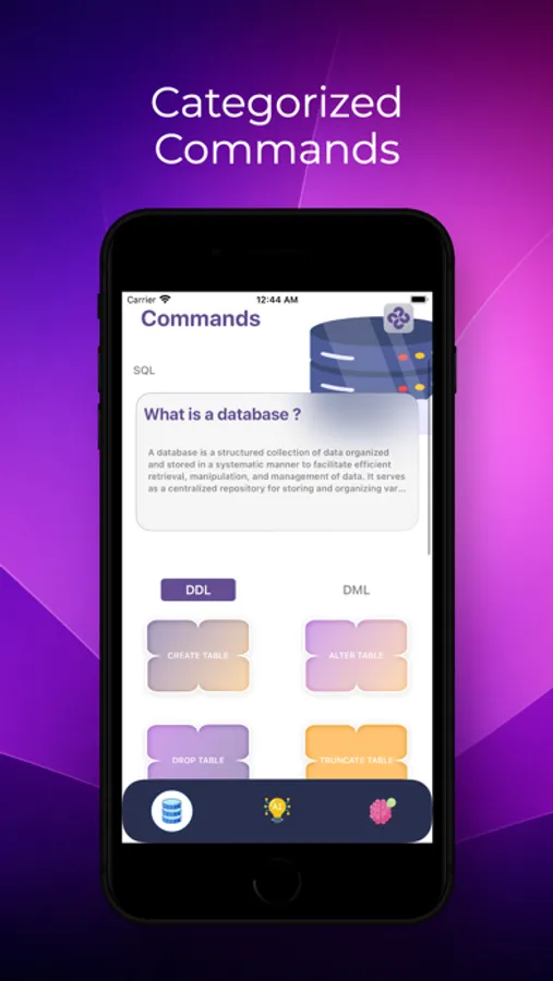 The first screen of SQL AI provides you with an extensive library of SQL DDL and DML commands, accompanied by clear explanations and examples. From creating tables to manipulating data, every aspect of SQL is covered comprehensively, ensuring that you have a solid foundation in the language.