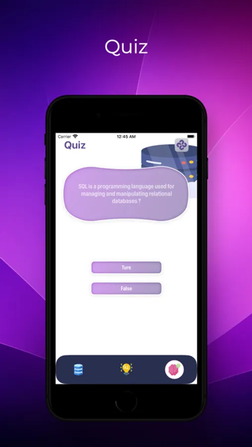 On the third screen, you can put your SQL knowledge to the test with a fun and interactive quiz. Challenge yourself with a variety of questions that cover different aspects of SQL, and track your progress as you improve your skills. With regular updates and new quizzes added, you'll never run out of challenges.