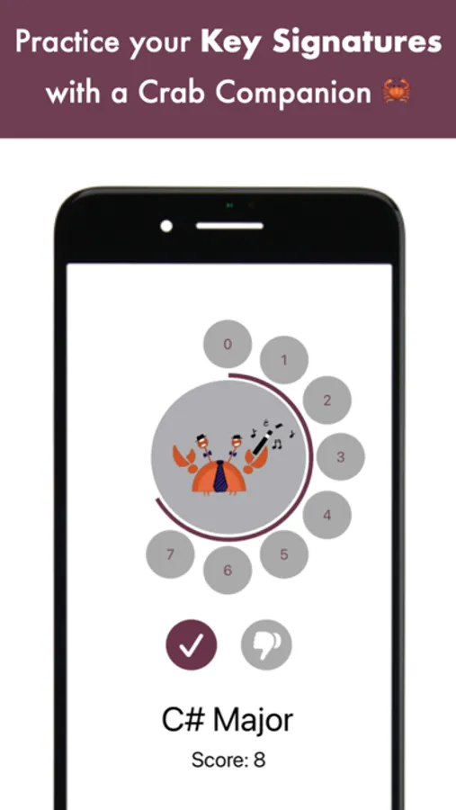 Quicken your key signature recall and strengthen your knowledge of the Circle of Fifths! Visually relate majors and their relative minors! Users who sing, play an instrument, or have an interest in music theory will love memorizing key signatures with the crabs in Key Maestro. Practice once a day for maximum learning and retention!