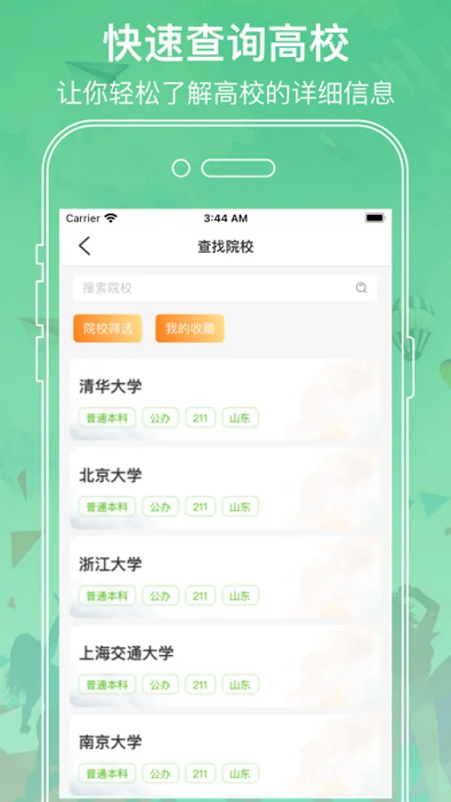 1、用户在选择志愿的时候会为用户提供多维度的智能选择大学,包括保底、稳妥、冲刺等。