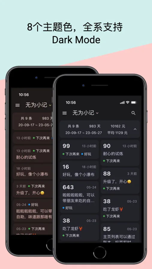 【简单直观】记录列表和统计图表左右滑动切换,根据筛选条件自动更新。