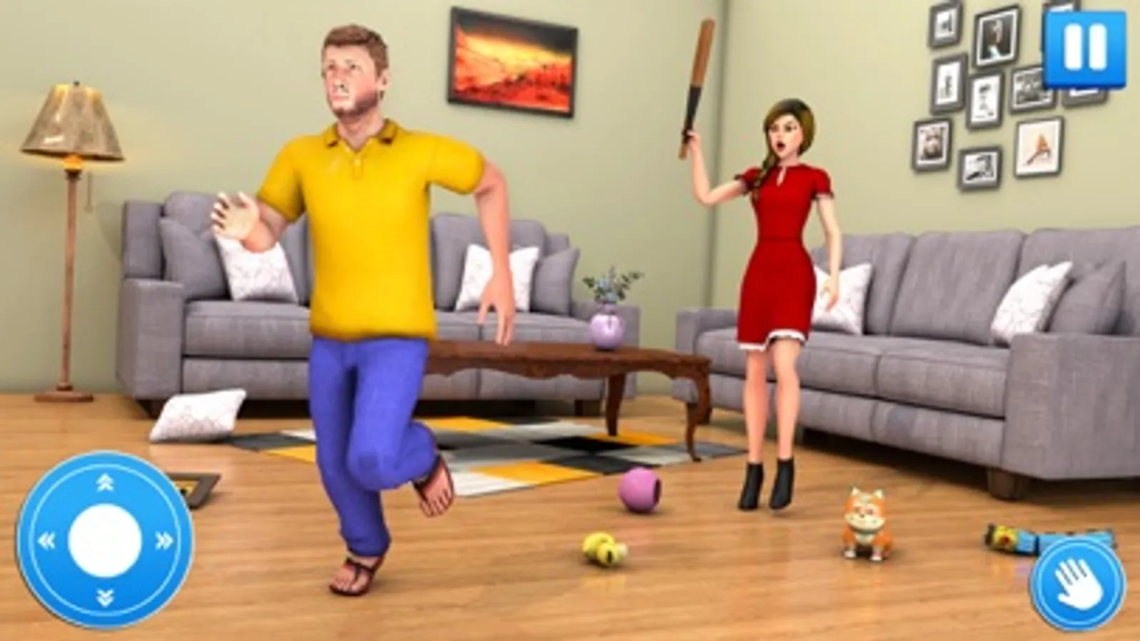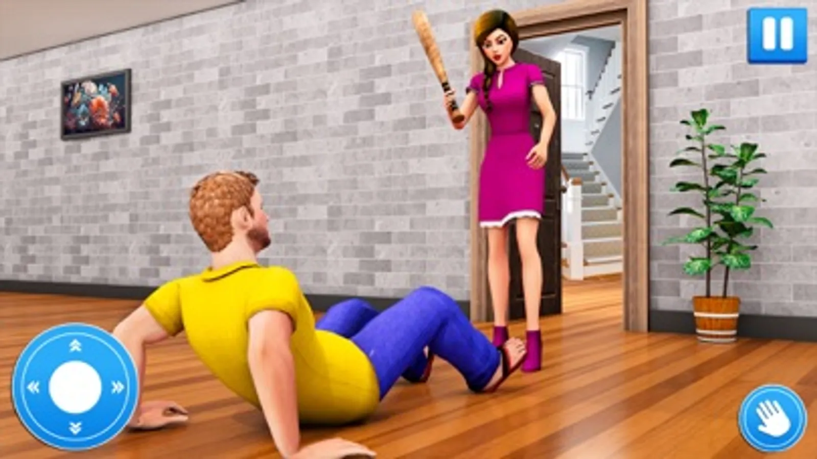 Welcome to husband wife simulation game. It’s time to scare the “Virtual creepy wife” by performing different activities. Your wife is wasting your money on shopping and saloon for makeup. The time to take revenge from her stole the car keys to stop her from going outside for the shopping. Paint her face and take the revenge of your anger when she is being ready for the kitty party to paint her dress with spray paint. She is in love with her cat. Pick the cat and drop it outside to disturb her.