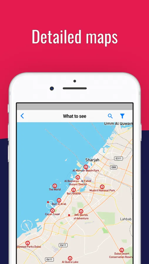 Have all the information offline and freely portable. For each destination, access comprehensive and up-to-date information covering thousands of places, attractions, points of interest and many hotel booking options within this Dubai travel guide.