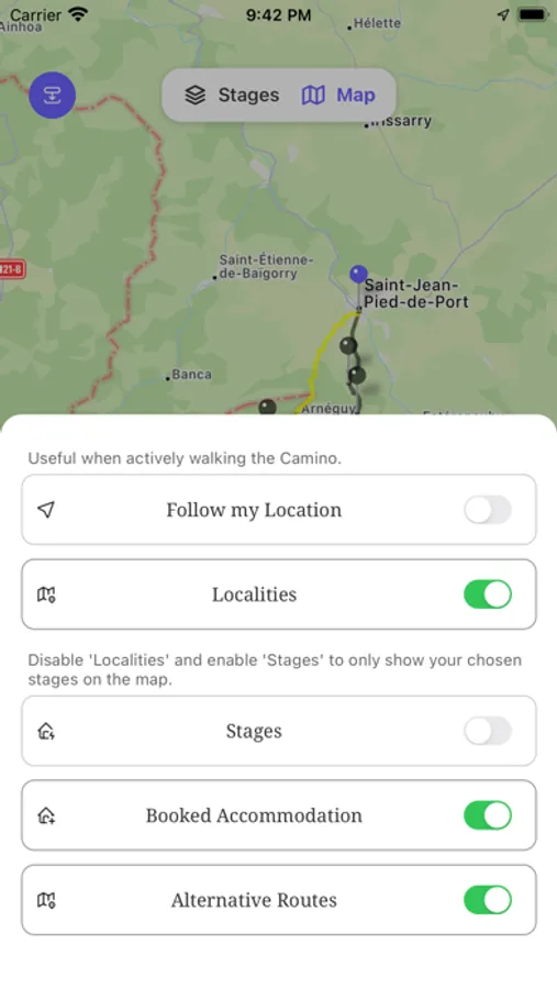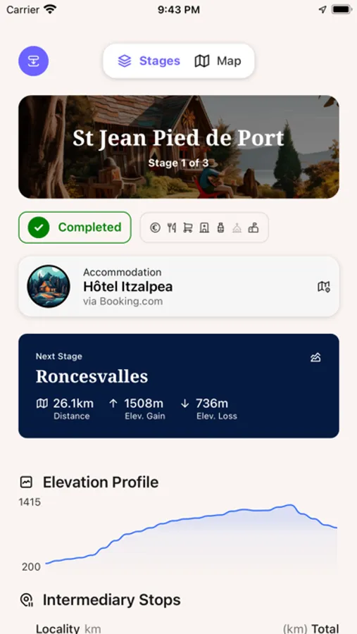 - Interactive Map & Route Planner: Effortlessly plot your daily stages, find nearby accommodations, variant routes, and points of interest. Customise your path and easily adjust on the go.