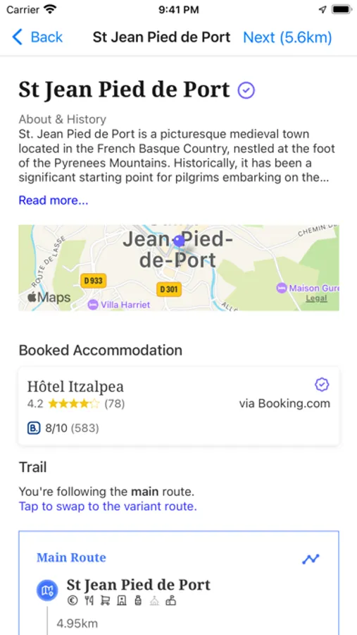 - Offline Access: The route, variants, plan, accommodation, and history are all baked into the app, ensuring access at all time. Note: The map's current location will require internet connectivity.