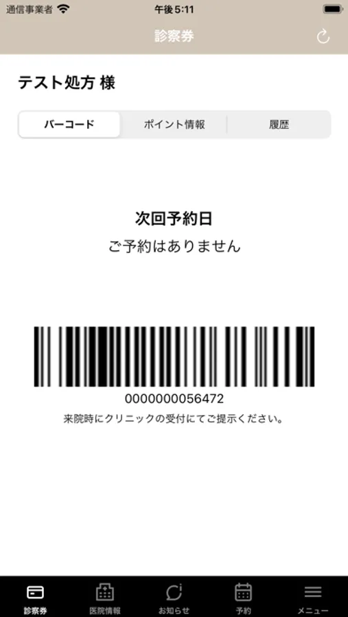 バーコードをかざすだけで受付出来るチェックイン機能、次回ご予約日時表示など、カードレスな診察券としてご活用頂けます。