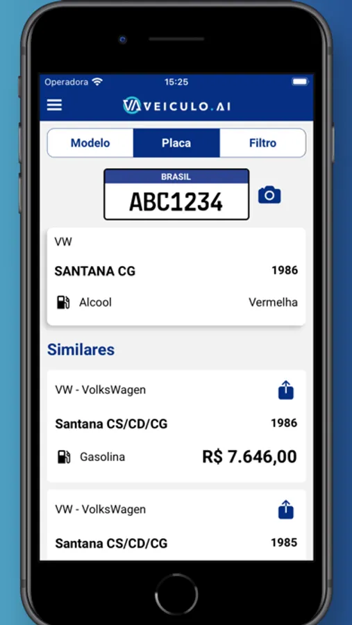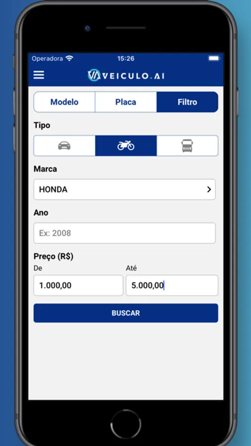 Encontre o seu próximo veículo com VeiculoAi! Nosso aplicativo torna a busca pelo veículo perfeito mais fácil do que nunca. Pesquise preços de carros, motos e caminhões com facilidade, tudo ao alcance da sua mão.