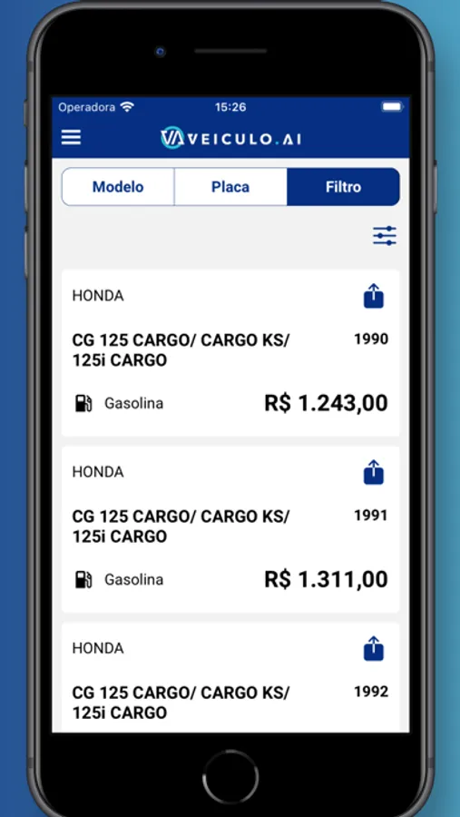 Não perca tempo vasculhando inúmeros sites. Deixe VeiculoAi fazer o trabalho por você. Seja o primeiro a descobrir o preço justo do veículo dos seus sonhos. Baixe VeiculoAi hoje e comece a sua jornada automotiva conosco!
