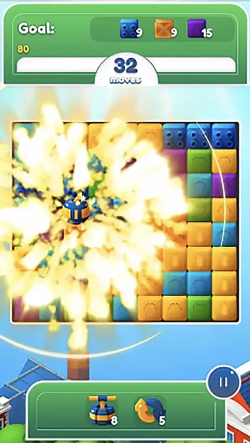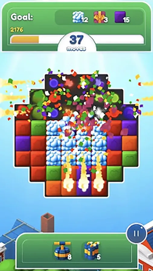 Tap to crush 2 or more adjacent cubes of the same color, Blast cubes and create powerful combos to pass levels.